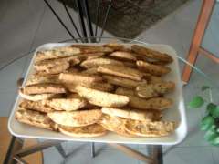 Sfornali, mettili su di un piano dove si possano tagliare agevolmente, aspetta una decina di minuti e poi procedi al taglio di tante fettine di 1 cm. di spessore.
