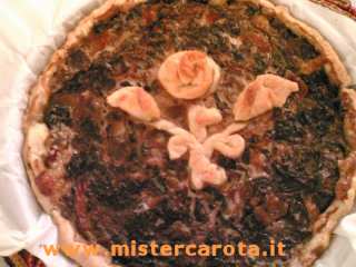 Riempite la sfoglia con il composto, livellate bene, decorate con i resti della sfoglia a cuocete nel forno