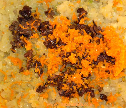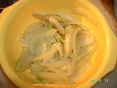Ingredienti per il ripieno: 2 finocchi - 20 olive taggiasche - la buccia di 1 arancia - olio extravergine d'oliva - sale e pepe.