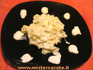 Ingredienti per la fonduta: 250 gr. di mascarpone - 150 gr. di gorgonzola piccante - 125 gr. di parmigiano grattugiato - un goccio di crema di latte.