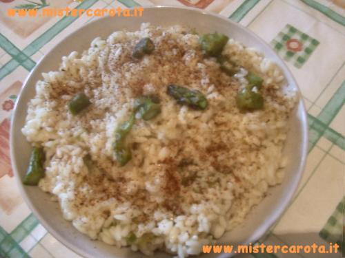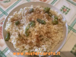 Ingredienti per 5 persone: 400 gr. di riso - 500 gr di asparagi - 1/2 cipolla - brodo - parmigiano - olio - sale - paprika - funghi champignon.