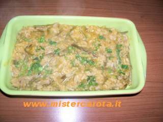 Passare nel frullatore il brodo con le parti legnose degli asparagi ed usare per bagnare il riso, fino a cottura, saranno necessari dai 12 ai 18 minuti, a seconda del tipo di riso utilizzato.