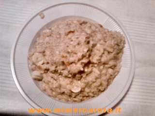 Ingredienti per 4 persone: 300 gr di riso - 300 gr di polpa di granchio (surimi) - 200 gr di salmone - 50 gr di salsa di pomodoro - 250 gr di panna - 1 aglio - olio extravergine d'olia - sale - pepe - 1/2 bicchiere di vino bianco - brodo di pesce.