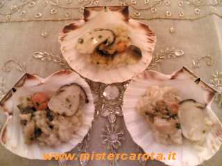 È molto bello servirlo nei gusci della Capesante come assaggio, preceduto magari da qualche antipasto, in questo modo le dosi bastano per 8-10 persone.