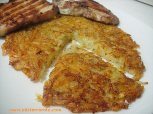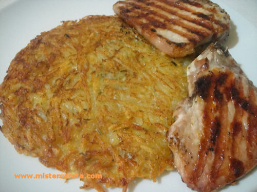 Questo è un piatto tipico svizzero, con molte varianti a seconda del posto in cui si mangia. Questa è la versione base, un rosti fatto partendo dalle patate crude, ma esiste anche il rosti alla pancetta, o al formaggio o il rosti fatto partendo da patate parzialmente lessate.