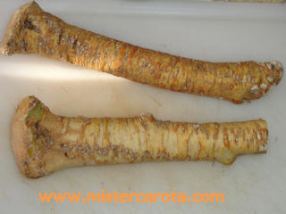 Pulire la radice di rafano con un panno bagnato e togliere la parte esterna con un peluchino (apposito piccolo coltellino).