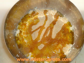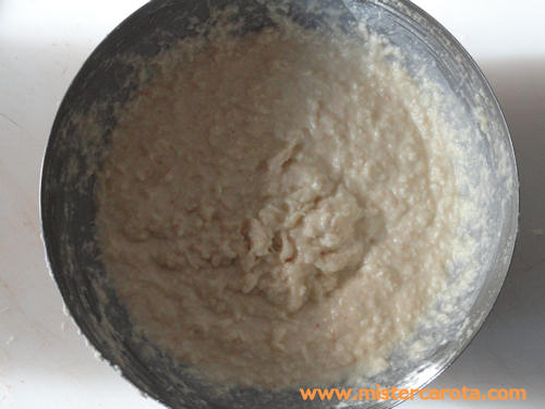 Unire al rafano il pane grattugiato, lo zucchero, il sale, l'aceto e l'olio, girando con una frusta.