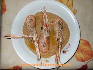 Ingredienti: 10 scampi - 250 gr di ceci secchi (se si ha fretta si possono usare anche ceci in scatola) - sedano - aglio - prezzemolo - sale - pepe - olio extravergine d'oliva - alloro.