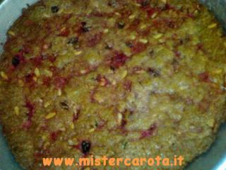 Ingredienti: 1/2 Kg di farina - 350 gr di zucchero - 50 gr. di burro - 1 bustina di lievito per dolci - 200 gr di olio d'oliva - 200 gr di vino Aleatico Dell'Elba - 1 bicchierino di liquore per dolci Alchermes - 200 gr di noci - 100 gr di mandorle - 100 gr di pinoli - 100 gr di uvetta ammollata nel cognac - 100 gr di nocciole.