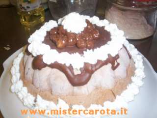 Ingredienti per la copertura: 100 gr di cioccolato fondente - 100 gr di panna montata - nocciole o altre decorazioni a piacere.