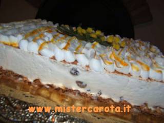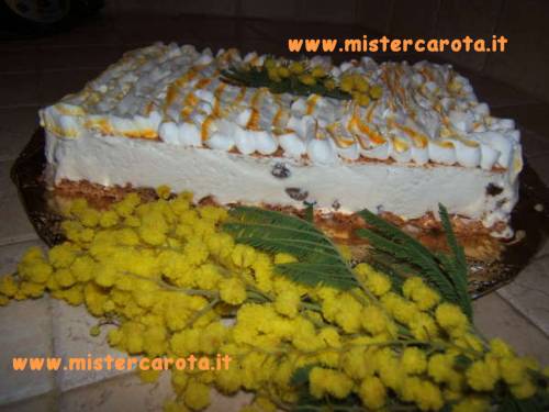 Ingredienti: 1 confezione di amaretti secchi - 2 uova - 2 cucchiai di zucchero - 500 gr di panna montata non zuccherata - 1 bicchiere e 30 gr di vino Malaga (o in sostituzione Marsala o rum) - 250 gr di panna montata - colorante alimentare giallo - uvetta sultanina 2 manciate.