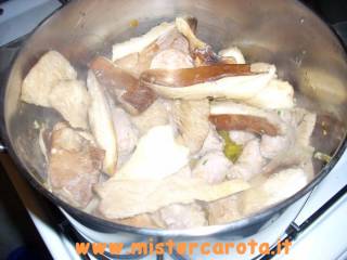 poi i funghi, e farli cuocere per alcuni minuti. Unire il vino e farlo sfumare.