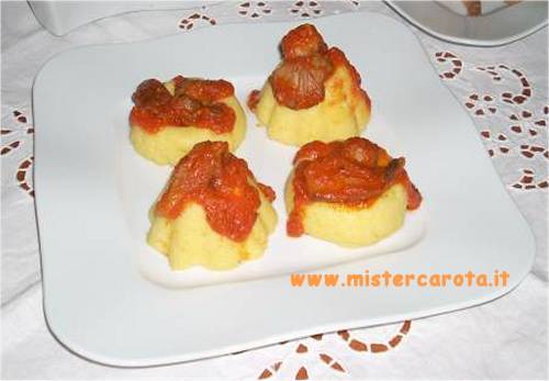 Cuocere fino a quando diventa abbastanza denso. Condire gli sformatini di polenta. Metterli alcuni minuti in forno caldo o nel microonde per poterli sevire ben caldi.
