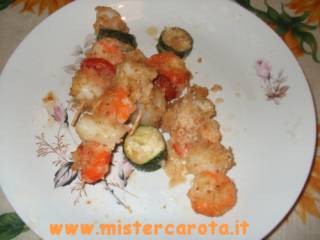 Ingredienti: 500 gr di seppie - 500 gr di mazzancolle - 200 gr di pangrattato - prezzemolo - pepe - pomodorini - zucchine.