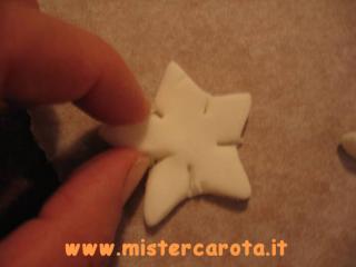 Alla stella più grande sovraporre la più piccola (se non aderiscono bene, inumidire le basi di attacco con un pennellino intinto nell'acqua)