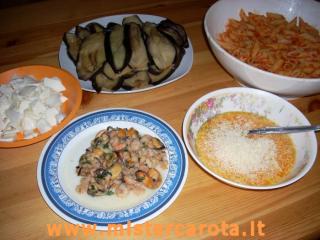 Unire la mozzarella, i gamberi, le cozze.