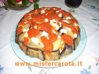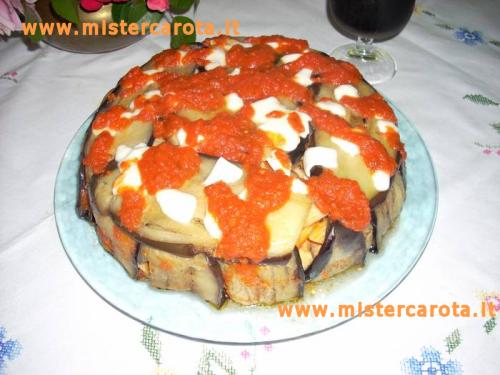 Richiudere mettendo sulla superficie le fette delle melanzane che debordavano dalla pirofila.
