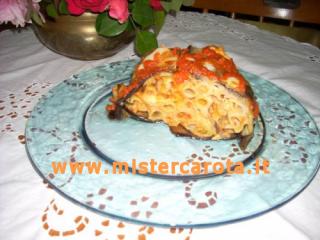 Togliere il timballo dalla pirofila aiutandosi con un piatto da pizza, condirlo con un po' di sugo e pezzettini di mozzarella rimettere in forno per 5 minuti.