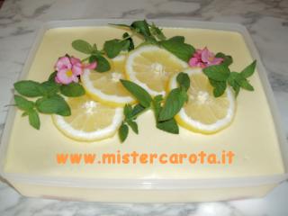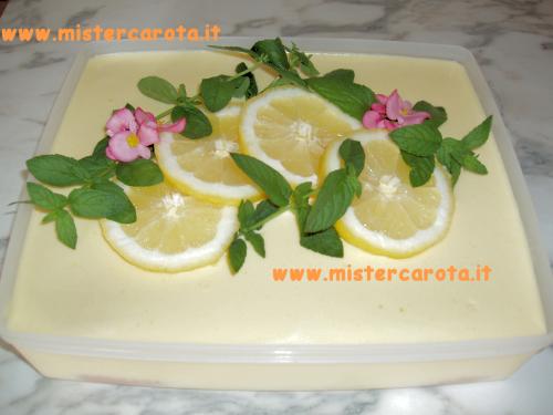 Ho riposto il dolce in frigo per tutta la notte e poi decorato con fette di limone e rametti di menta selvatica.