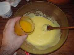 Aggiungiamo il succo di arancia poco per volta mentre continuiamo a mescolare