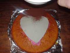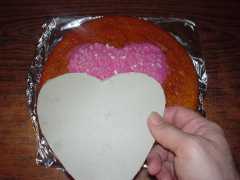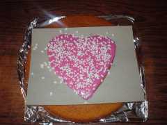 Copriamo la glassa gia' rappresa con il cartoncino a forma di cuore