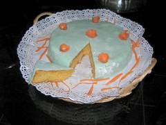 Lasciarla quindi raffreddare, metterla su un piatto e stendervi sopra un velo di marmellata d'albicocche e coprirla con una sfoglia di pasta di mandorla, preparata seguendo la ricetta della