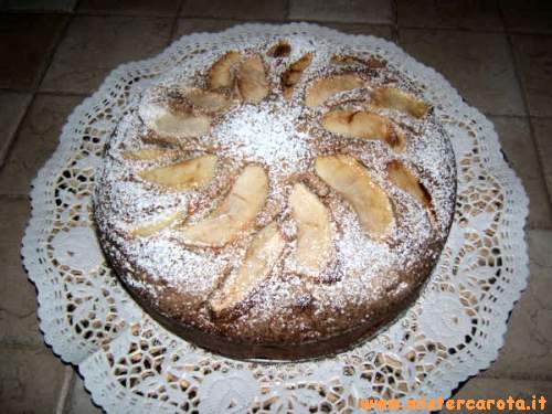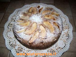 Ingredienti: 4 uova - 300 gr di farina 00 - 200 gr di zucchero - 125 gr di yogurt bianco magro - 1/2 bicchierino di rum - 1 bustina di lievito per dolci - la buccia grattugiata di 1 limone - 3 mele - 12 noci - zucchero a velo per decorare.