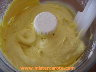 In un robot da cucina mettere il burro e la ricotta. Azionare fino ad ottenere una cremina bella liscia ed omogenea. Unire l'estratto di vaniglia, la buccia di limone e uno alla volta, le uova. Poi, una cucchiaiata alla volta, aggiungere le polveri (farina, lievito, sale).