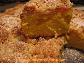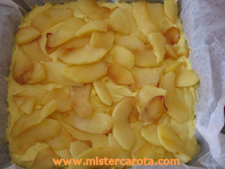 Versare in uno stampo ricoperto di carta forno, sopra distribuire le mele.