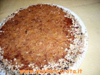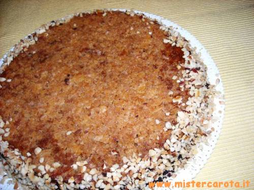 La torta non deve crescere ma cuocere piano e rassodare, una volta cotta, (si può anche fare la prova dello stecchino, che dovrà uscire umido ma pulito) lasciarla raffreddare e poi capovolgerla, in modo che la base diventi la parte superiore della torta.