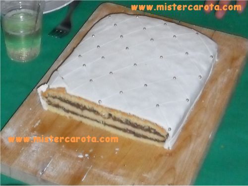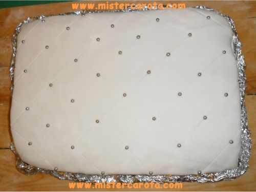 Stendere la pasta di zucchero in modo uniforme e posizionarla sopra la torta.
