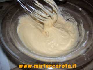 ...uno alla volta facendo bene incorporare il primo prima di mettere il secondo. Aromatizzare la crema ottenuta con 2 tazzine di caffè,