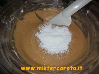 mescolare bene e aggiungere una bustina di lievito in polvere. Versare nello stampo imburrato e infarinato e cuocere a 160-170? per circa 35 minuti facendo la prova dello stecchino.