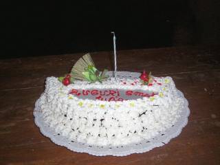 La caratteristica di questa torta è di essere stata preparata all'improvviso per un emergenza: mia sorella venne a trovarmi, era il giorno del suo compleanno, quindi per farle una sorpresa, presi la fetta superiore di un Pan di Spagna, che mi sarebbe servito per un'altra torta, e confezionai al volo la sua.