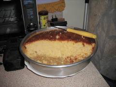 Imburriamo una teglia non molto grande perché la torta dovrà venire alta, inforniamo a 180°C. fino a cottura ultimata (lo stecchino al centro è sempre un buon metodo di controllo cottura).