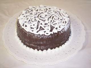 Ora tagliare il Pan di Spagna in 3 strati, mettere il primo disco su un piatto, bagnare con il latte, spalmare metà della crema, mettere il secondo disco, bagnare, mettere il resto della crema, coprire, bagnare ancora, coprire la torta con il fondente sciolto in 100 gr di panna, altri 100 gr verranno montati per la decorazione sulla base della torta.