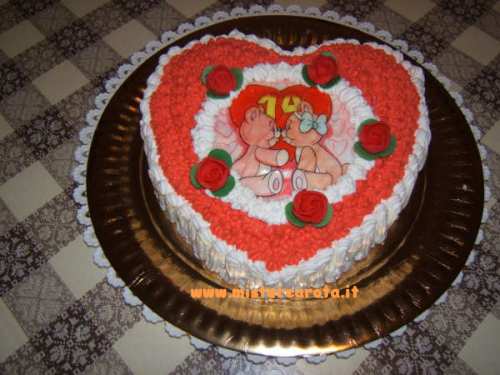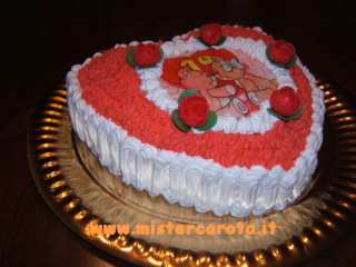 Ingredienti per la decorazione: 400 ml di panna da montare non zuccherata - colorante alimentare rosso - cialda San Valentino e roselline di ostia.