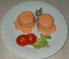 Togliete i tortini dagli stampi, sistemateli sui piatti individuali (1 o 2 per commensale), copriteli con qualche cucchiaio di salsa bollente e serviteli con verdure fresche di contorno.