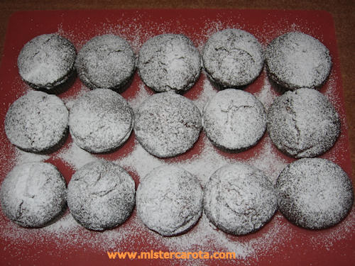Ingredienti: 140 gr. di farina - 20 gr. di amido di mais - 30 gr. di cacao - 90 gr. di burro - 3 uova - 1 bacca di vaniglia (i semini) - 60 gr. di latte - 2 cucchiai di latte in polvere (facoltativo) - 130 gr. di zucchero a velo - 1 pizzico di sale.