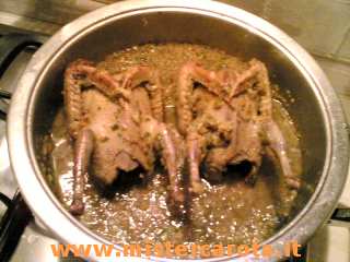 Togliete le interiora (se non ne gradite il sapore) e l'aglio, fate intiepidire e spolpate i colombi (io ho tolto anche la pelle).