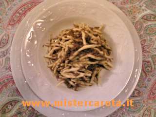 Cuocete le trofie in abbondante acqua salata, scolatele bene e cospargetele con il sugo di colombi, spolverate con il parmigiano e servite subito.
