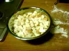 Tagliate il formaggio a quadretti,