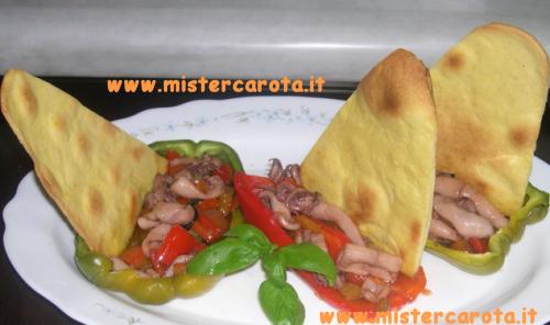 A questo punto unire i peperoni a dadini ad il pesce, mischiare, riempire le calotte cotte in forno, adagiarvi la vela e guarnire con basilico.