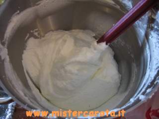 Ingredienti: 1/2 lt di panna da montare - 120 gr zucchero - 3 chiare d'uovo - 1 stecca di vaniglia - cioccolato fondente