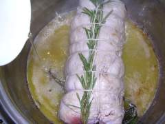 Togliere l'arrosto dal forno, affettarlo e cospargerlo con un cucchiaio della salsina delicata ottenuta.
