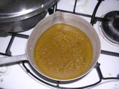 Lasciare un po' evaporare e mettere l'acqua calda e i dadi.
