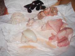 Cominciate ad aggiungere il pesce partendo dai pezzi pi? grossi e quindi più lunghi a cuocere fino ad arrivare ai gamberetti negli ultimi 10 minuti. Diciamo che per il tutto ci vuole circa una mezz'ora a 40 minuti. Comunque assaggiate.