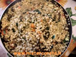 Ingredienti: 250 gr di farro - 2 carote - 2 patate - 300 gr di coste o catalogna o spinaci - 1 cipolla - 1 pomodoro - 100 gr di zucca - 1 zucchina - 100 gr di pancetta affumicata - sale - peperoncino.