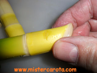 Per capire dove inizia la parte tenera e commestibile del germoglio dovete provare ad incidere con l'unghia il bambù a metà tra un nodo e l'altro, a cominciare dalla parte tagliata, se l'unghia penetra senza eccessivo sforzo siete arrivati al punto da cui il germoglio è tenero e commestibile.