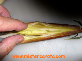 Togliete delicatamente tutte le foglie che avvolgono il germoglio vero e proprio.